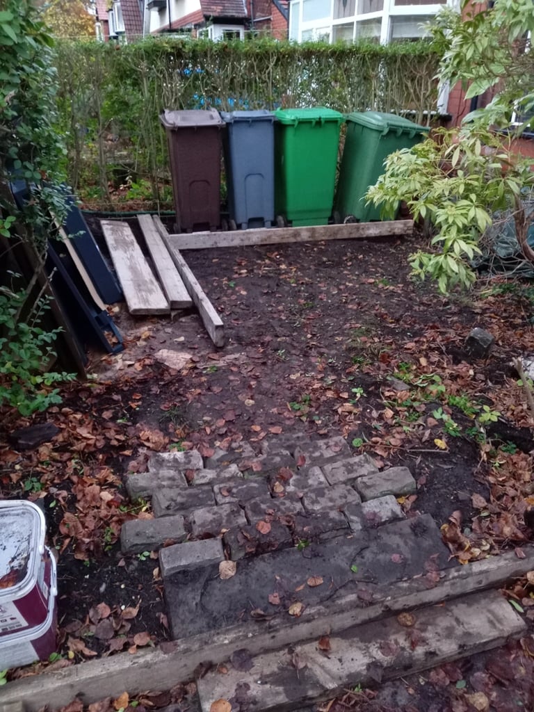 The bins had to go in the front garden, but leaving them on the grass/soil isn't a good idea.